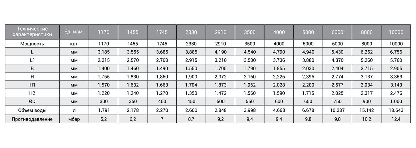 - мощность выработки перегретой воды 1170-10000 кВт
