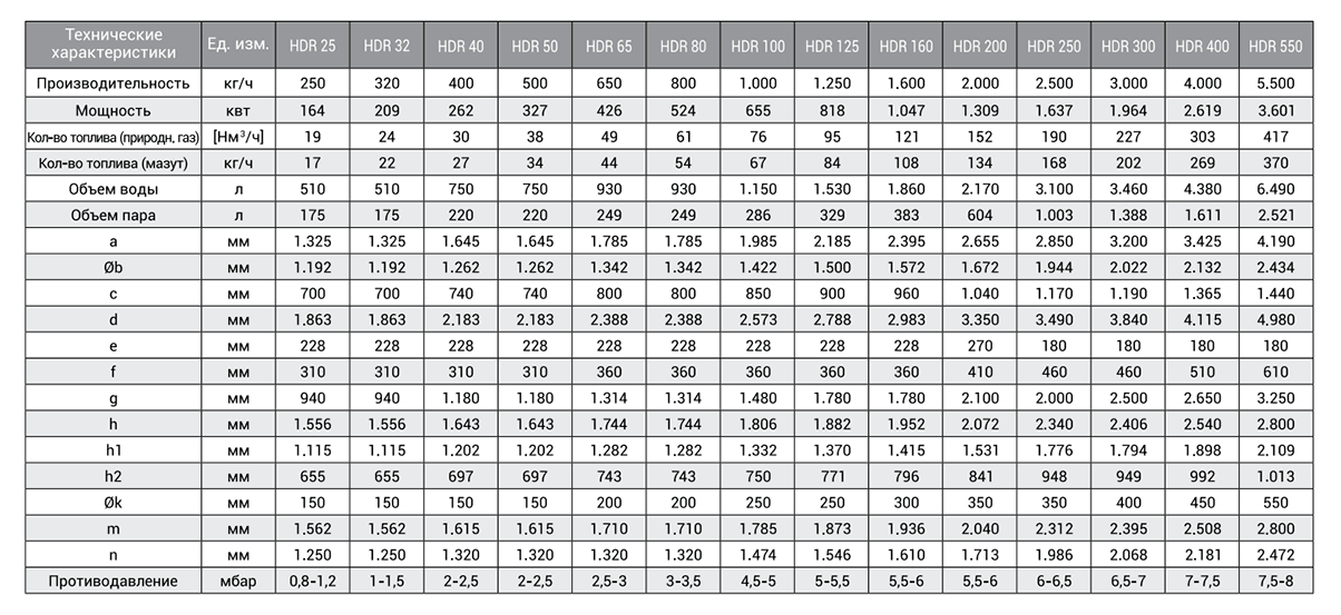 - паропроизводительность 0,25-5,5 т/ч