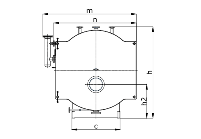 - стандартное оборудование: выпуск пара, забор питательной воды, вентиляционное отверстие, выпуск, клапаны поверхностной продувки и предохранительные клапаны, группа насосов питательной воды, принадлежности для эксплуатации и безопасности, электрическая панель управления